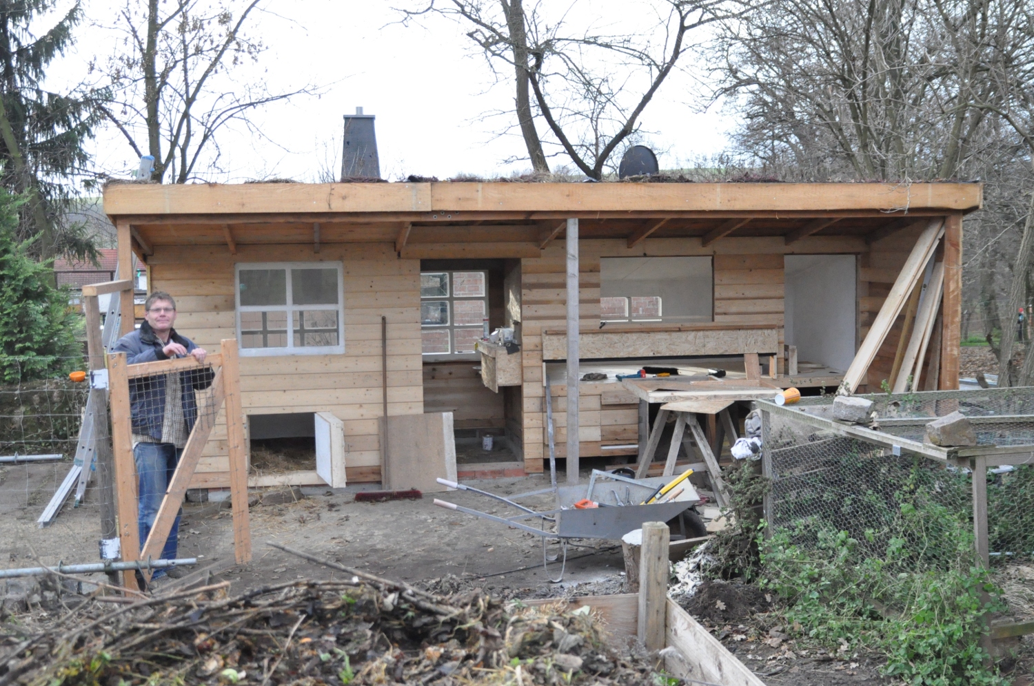 Hühnerschweineentenstall ist zu 99% fertiggestellt. Zu den Annehmlichkeiten zählen: